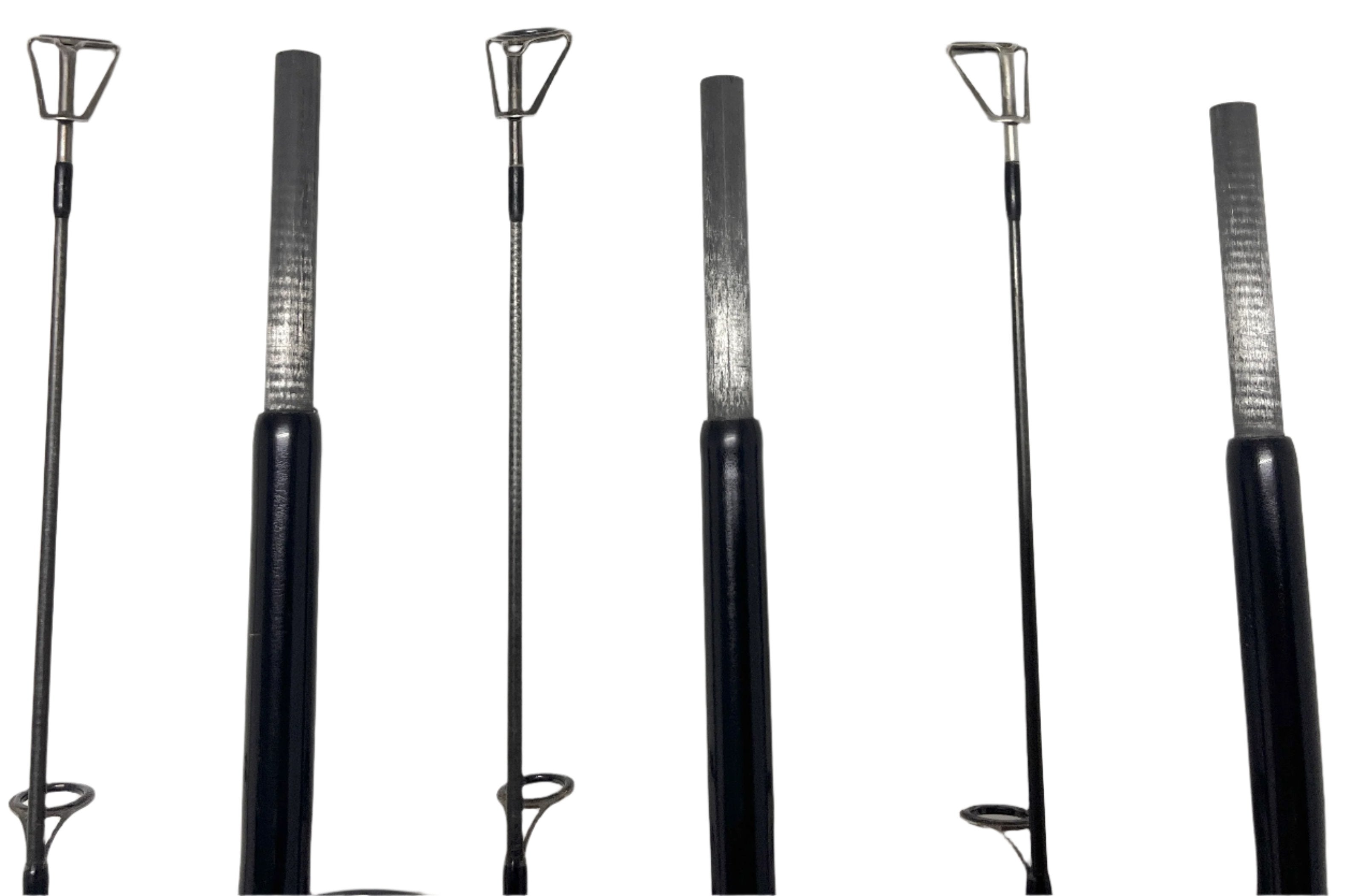Condition: 8/10, some light marks, scratches on butt caps, a few paint chips on reel seat hoods, no cloth bags