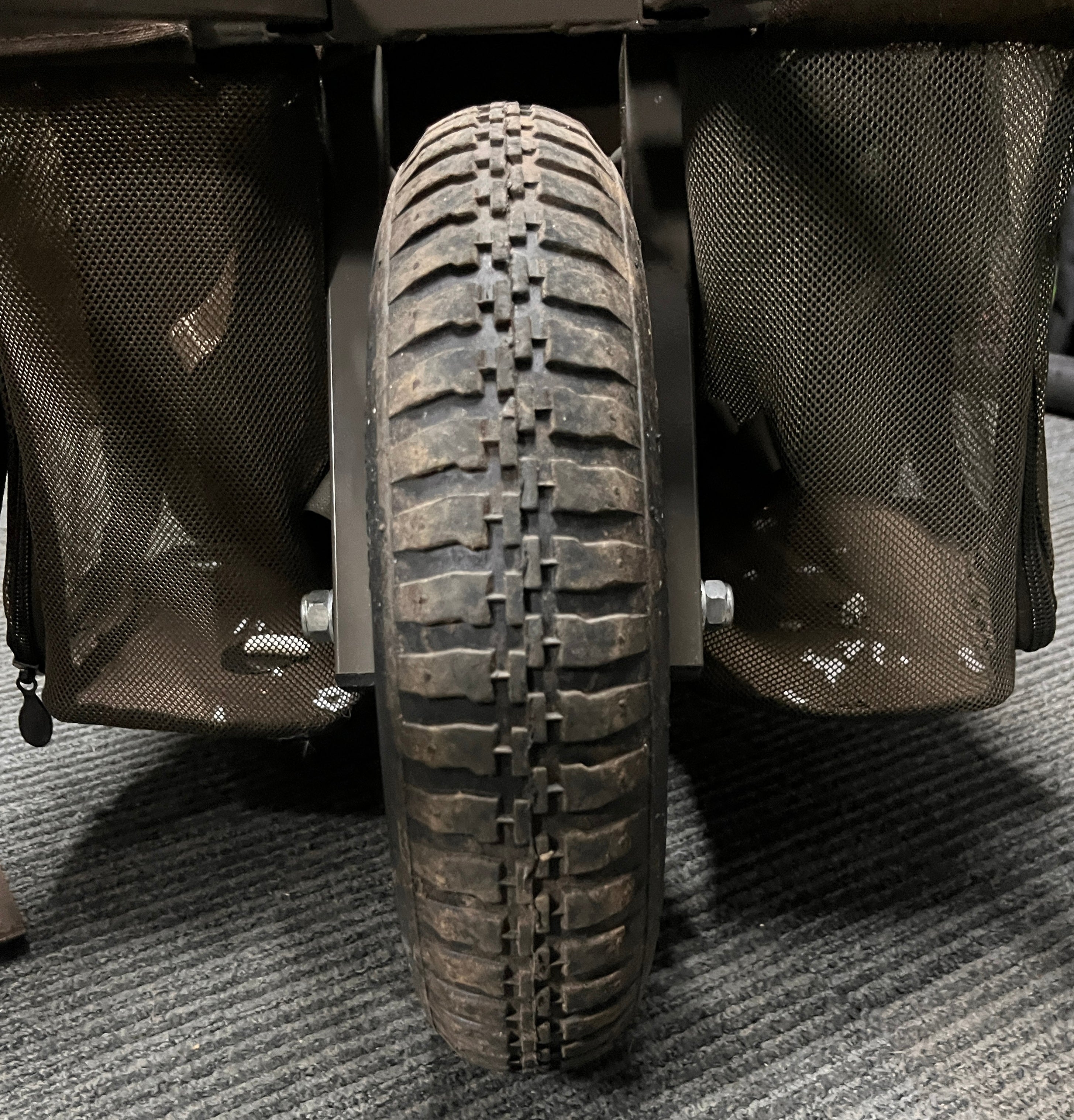 - Further features include robust, hi-tensile steel frame, quick release wheel system with pneumatic tyre and swivelling mud feet with spiked bases