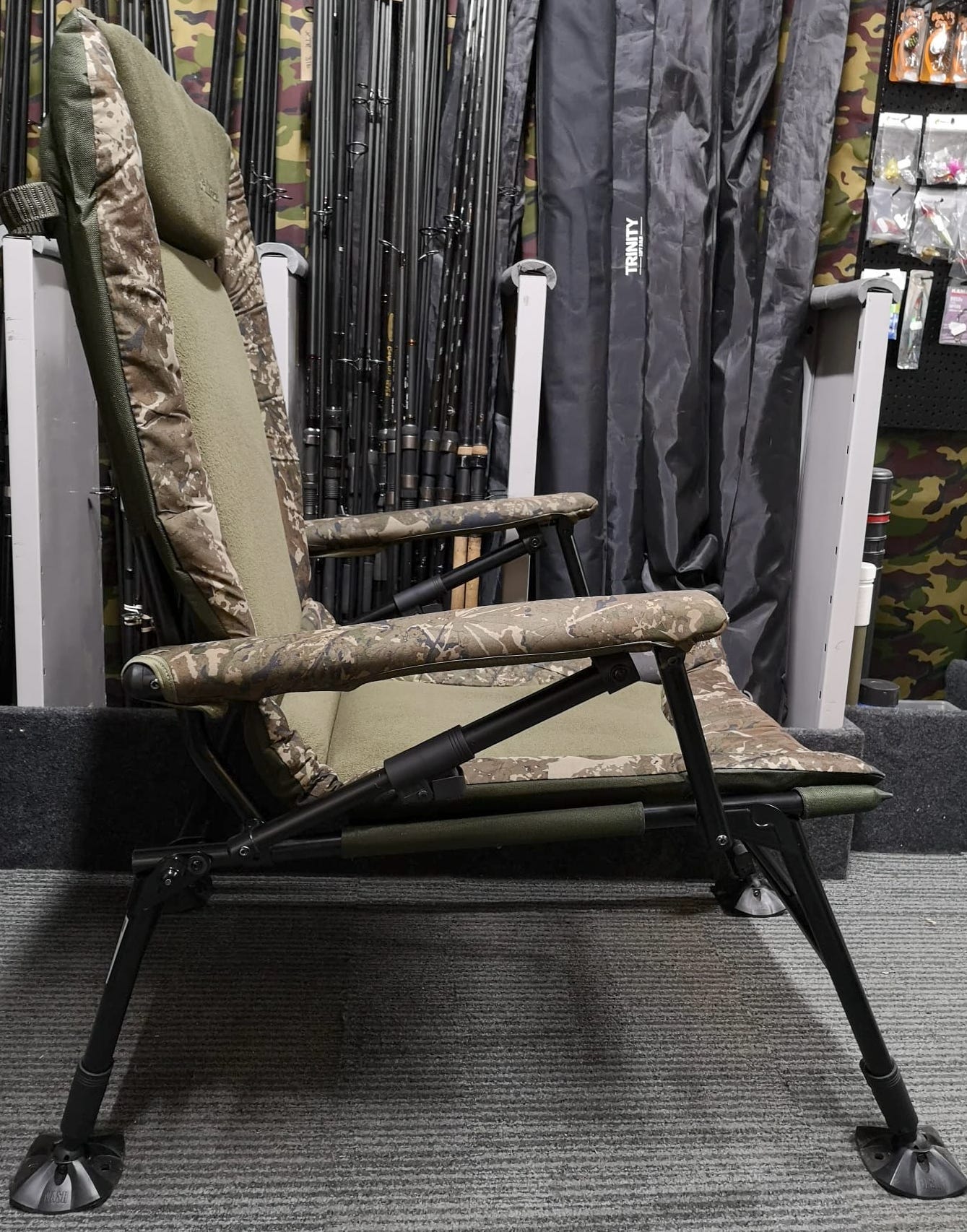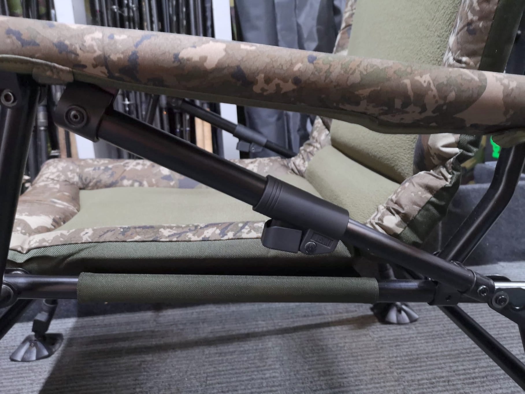 Featuring spring locking levers each side of the chair, disengaging them allows you to push backwards or allow the head section of the chair to pull forwards before engaging them again to set the rake position of the seat – much like an aeroplane seat.