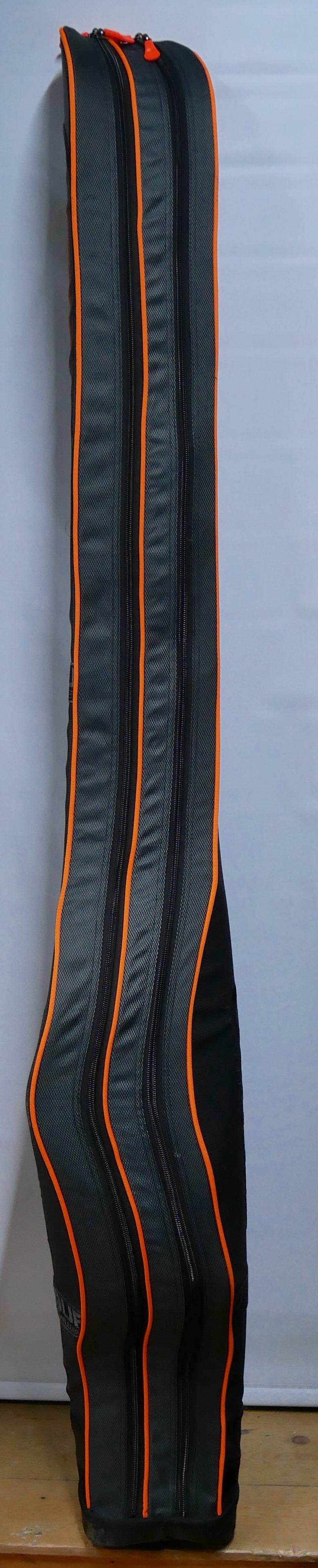 - Double sided. This bag will easily carry 4-6 set ups up to 12ft two-piece rods (195cm)