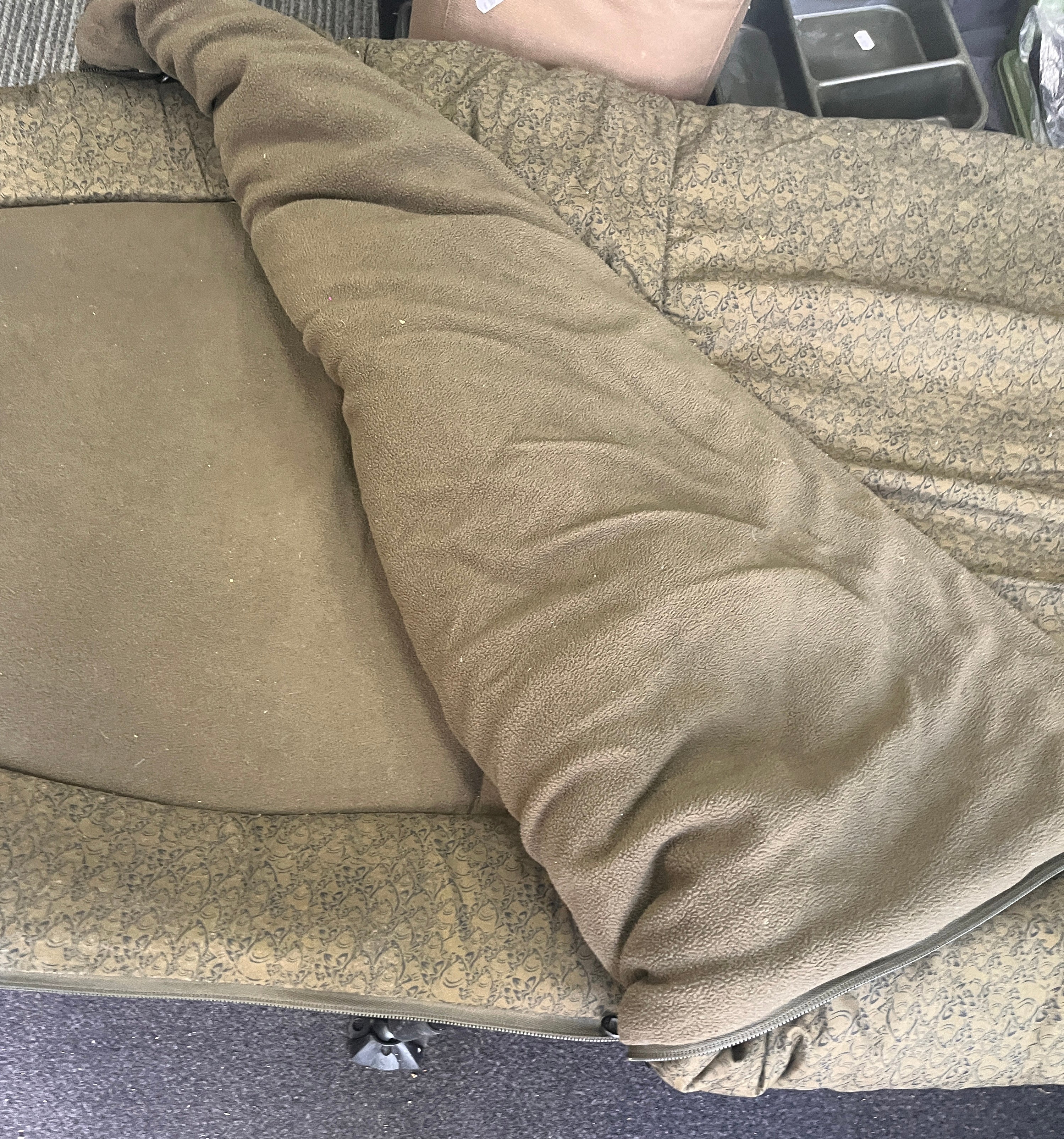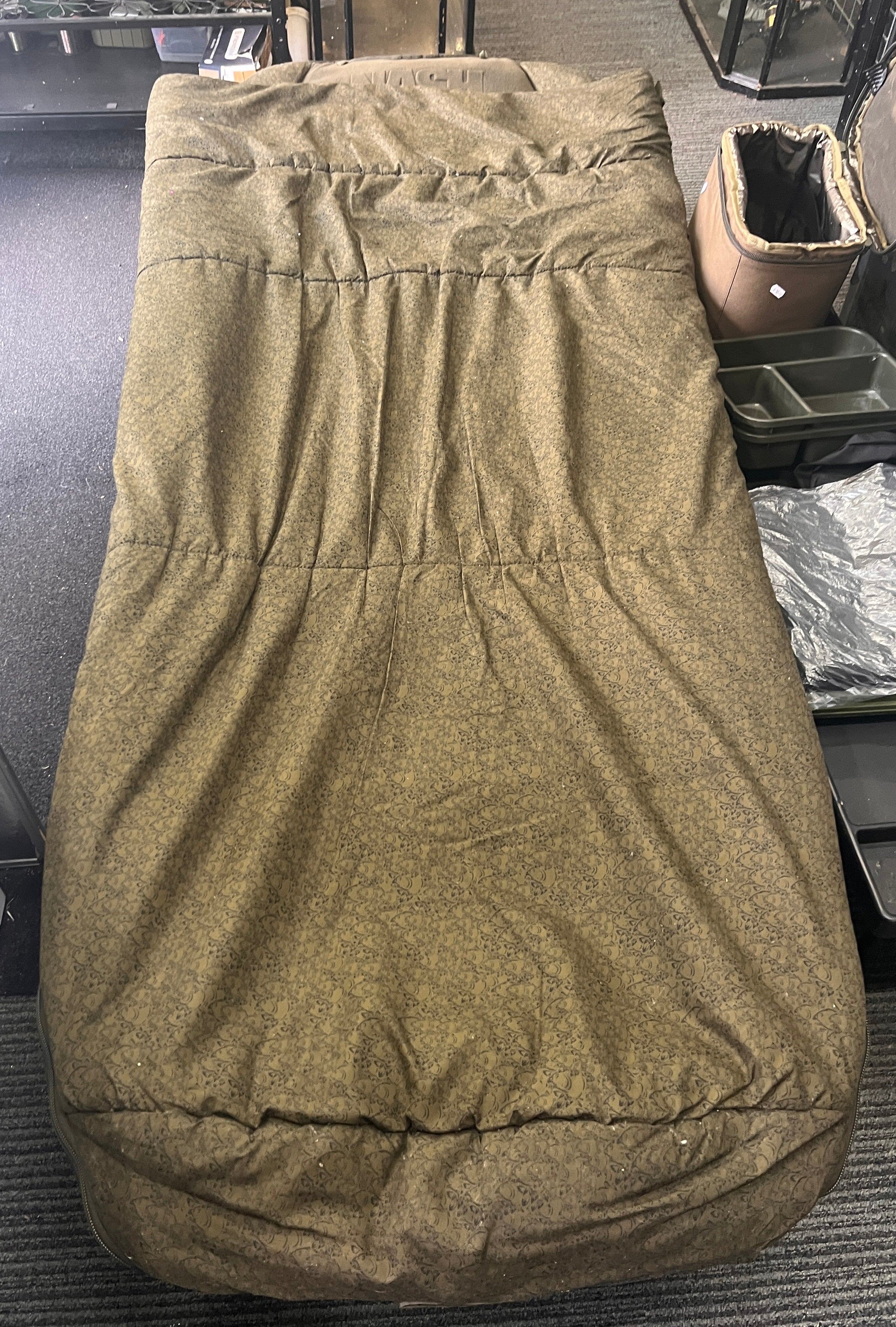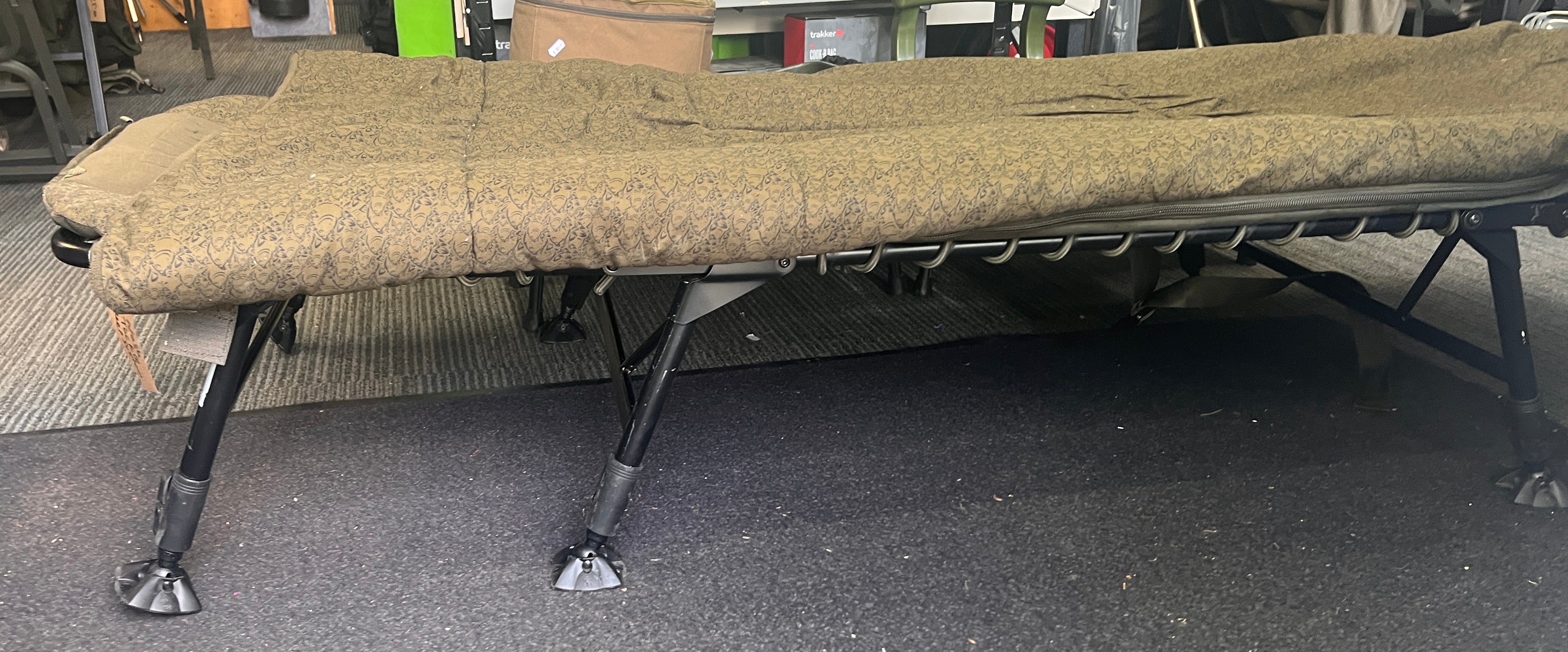 Constructed around a tough 3 leg steel frame with enlarged hinge mechanisms and lever lock one touch leg adjustment the Nash Sleep System is as warm as it is practical thanks to a micro fleece covered mattress with a hollow fibre filled four season duvet and twin crash zips.