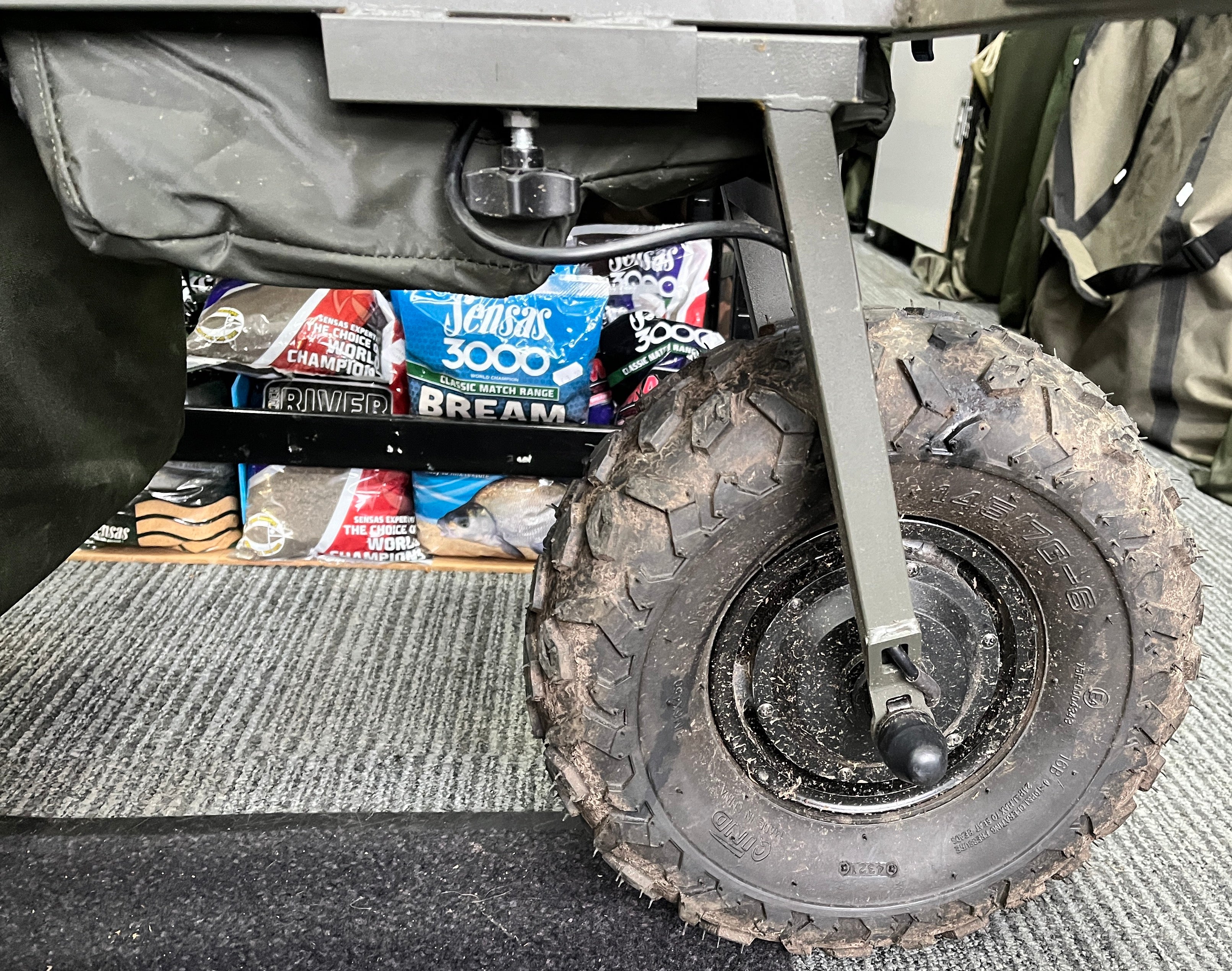 - Integrated under-barrow storage bag