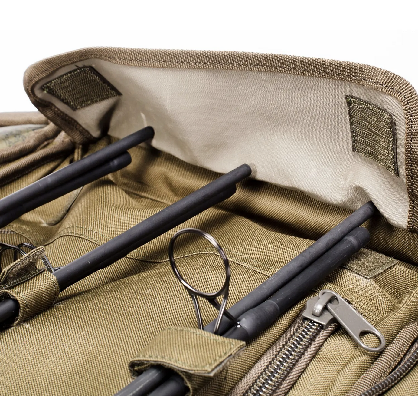 - full zipped side pocket holds net poles, nets, retainers, bank sticks and storm poles