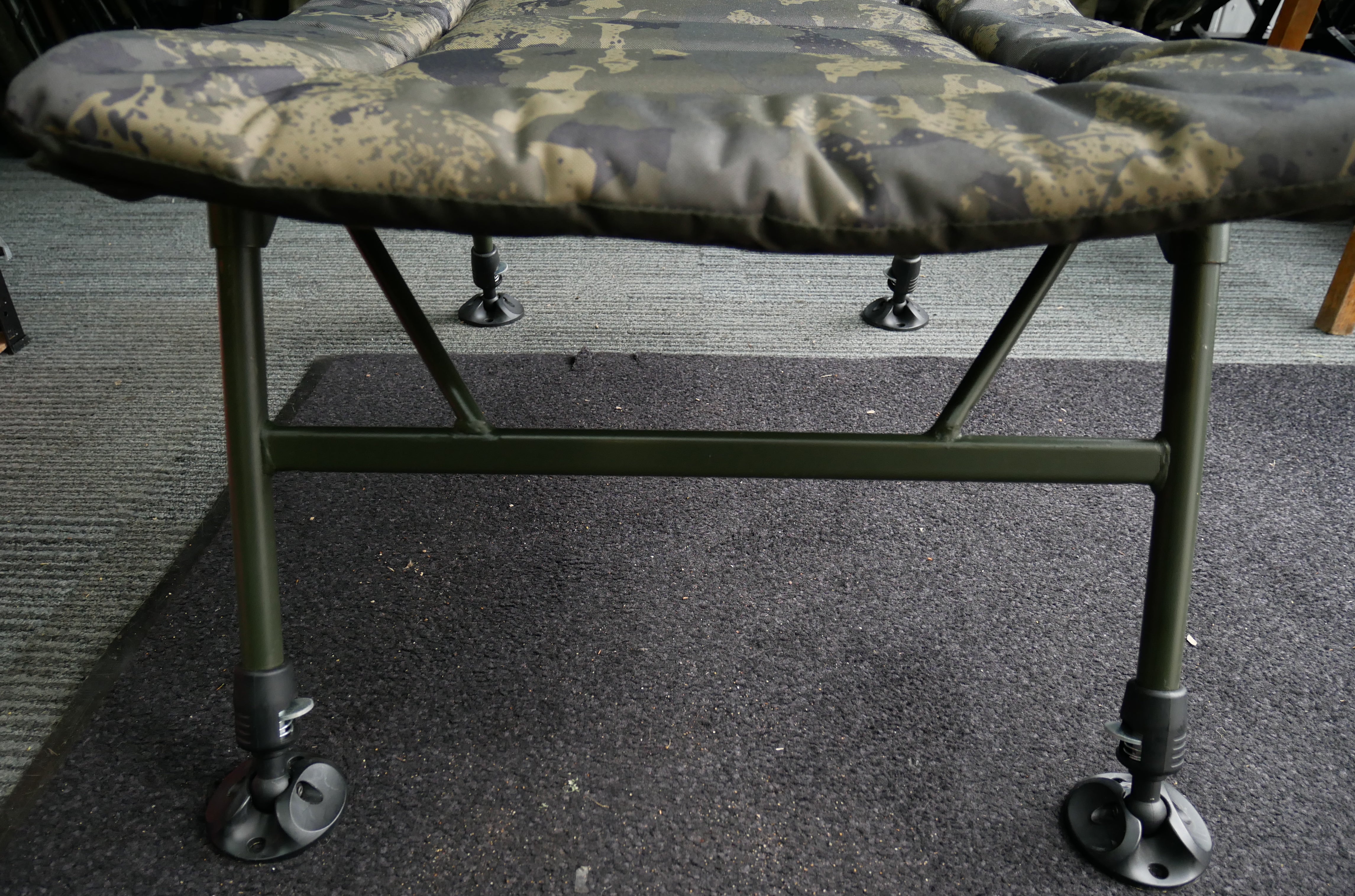 - Padded mattress with 600D, PU-backed, camouflage fabric